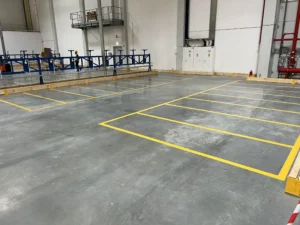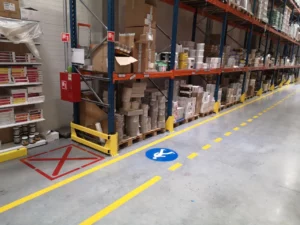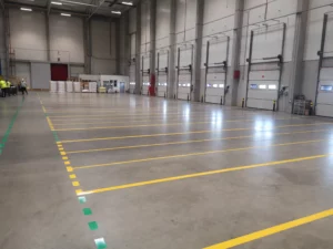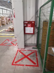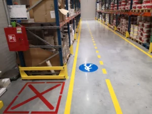 In dieser Kategorie finden Sie Malerarbeiten an Feuerlöschsäulen und -wänden, sowie Warnmarkierungen, die die Sichtbarkeit wichtiger Bereiche erhöhen. Wir bieten auch Profile und Informationsschilder, Visual Management-Markierungen und Regalidentifikationssysteme an, die das effektive Management von Lager- und Produktionsräumen unterstützen.