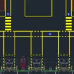 Lackierung von Laderampen, Laderampen und Gefahrenzonen mit schrägen gelben und schwarzen Warnstreifen.