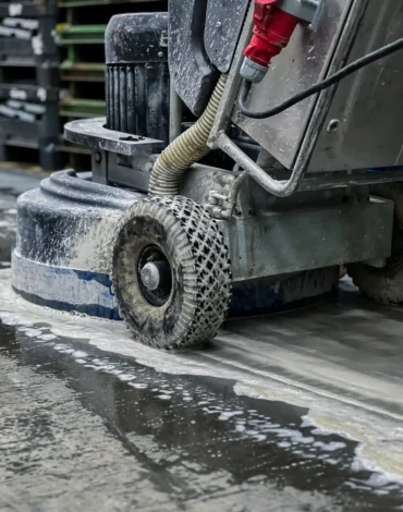 Während des Schleifens und Polierens von Beton werden verschiedene Produkte verwendet, wie spezielle Schleifpads und Poliermittel, die helfen, das gewünschte Ergebnis zu erzielen.