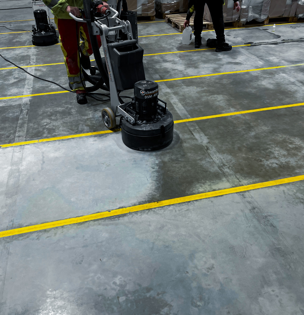 Betonbodenrenovierung, Betonschleifen in Industriehallen