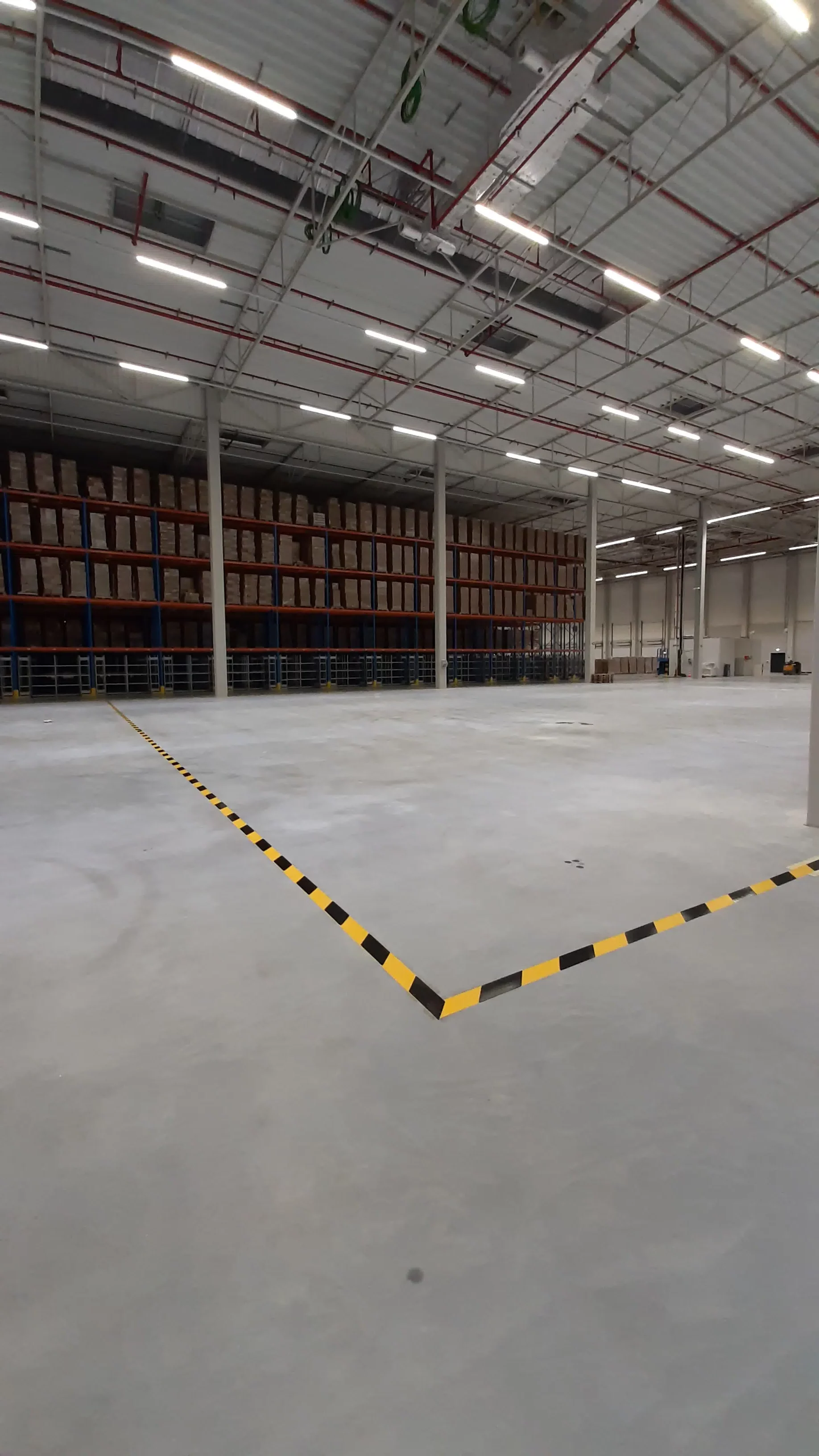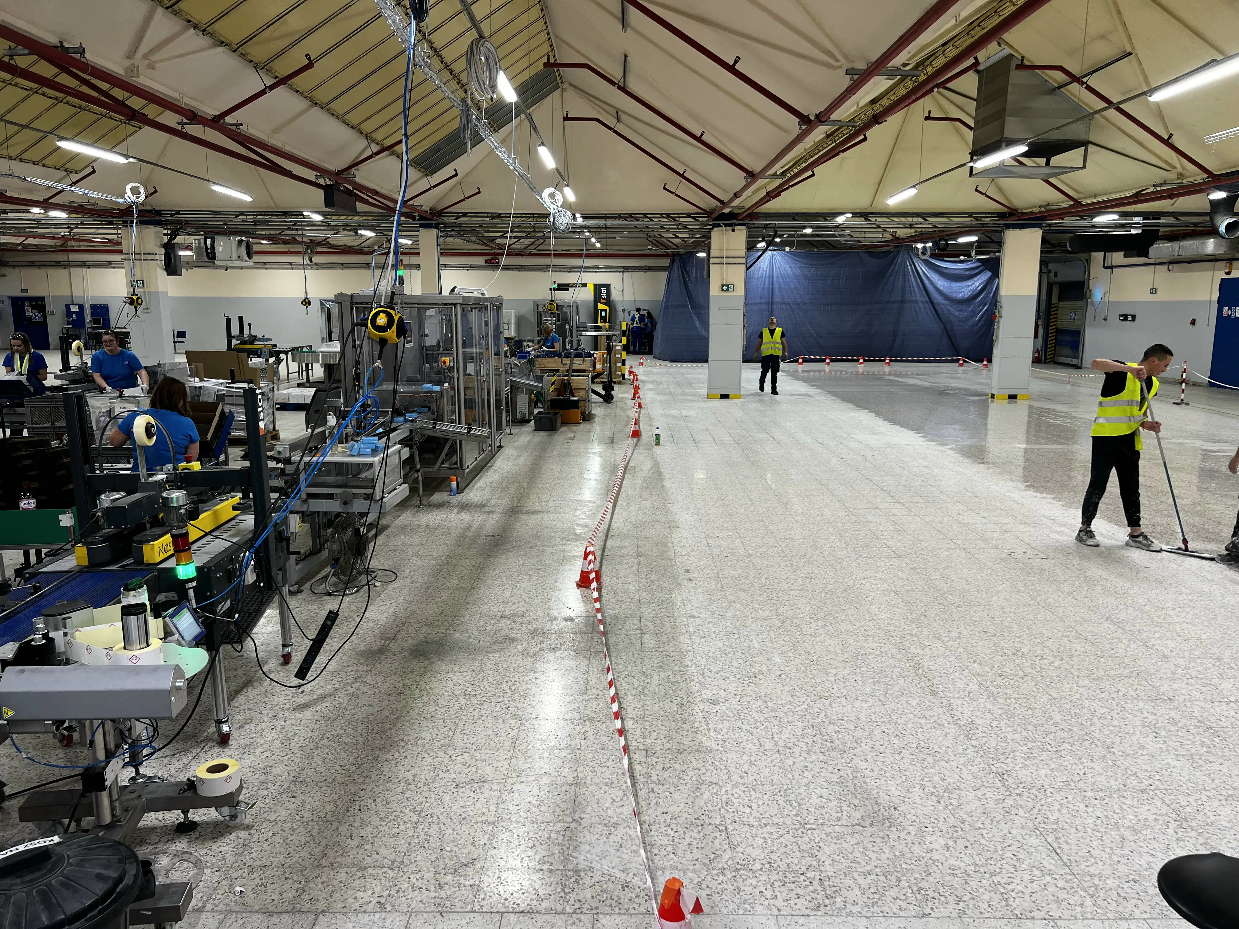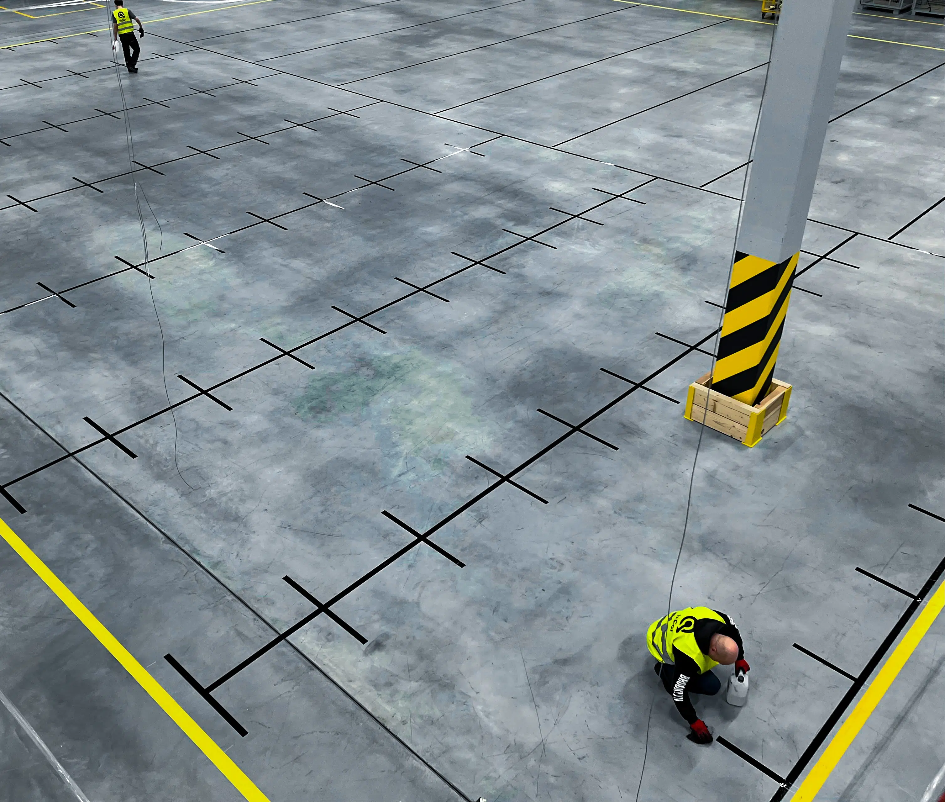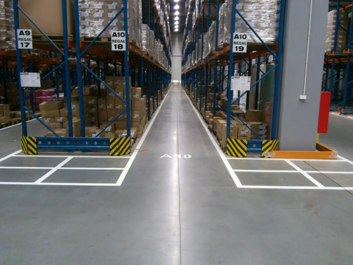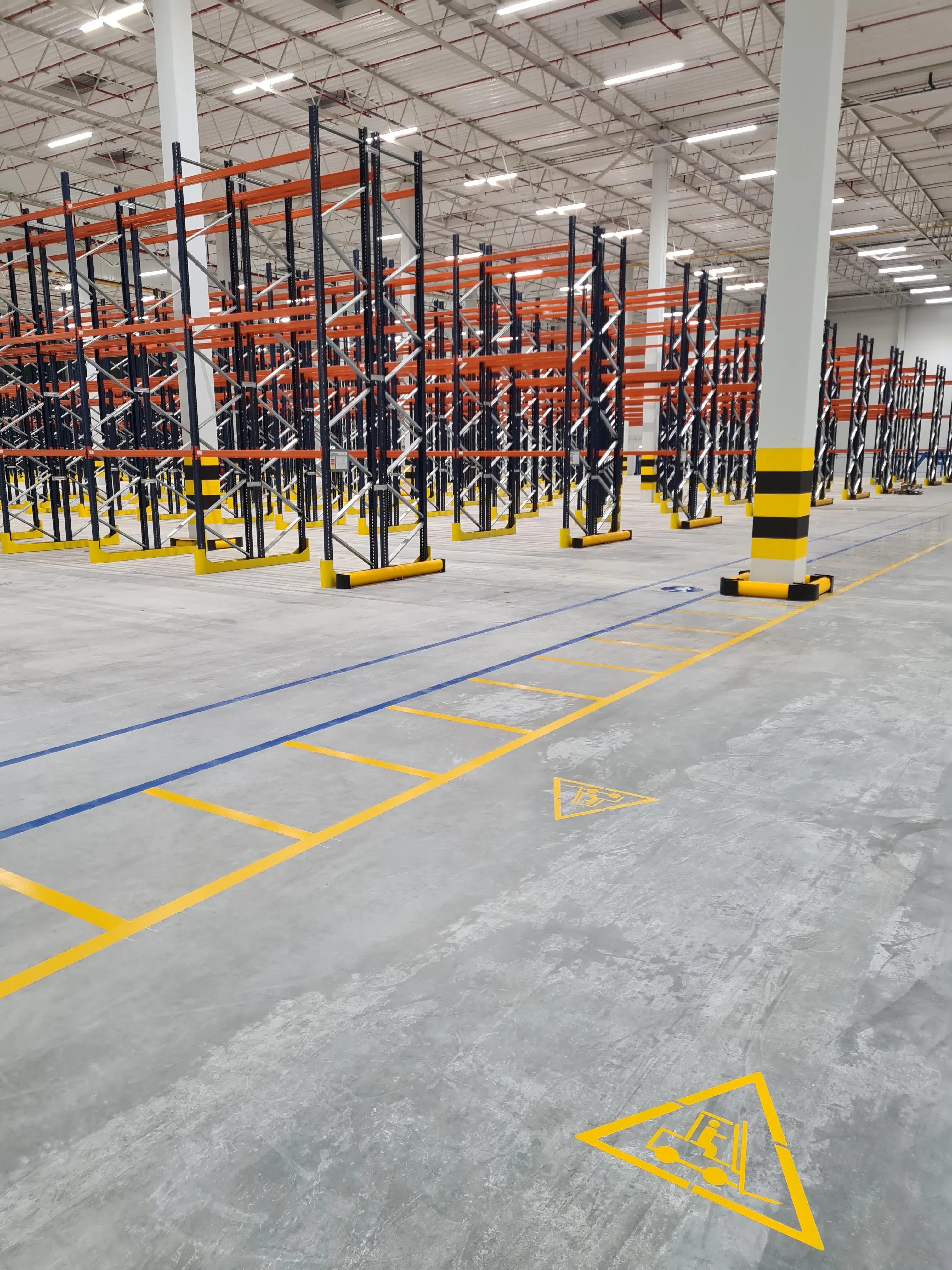 Dünnschichtige Bodenmarkierung in Industriehallen