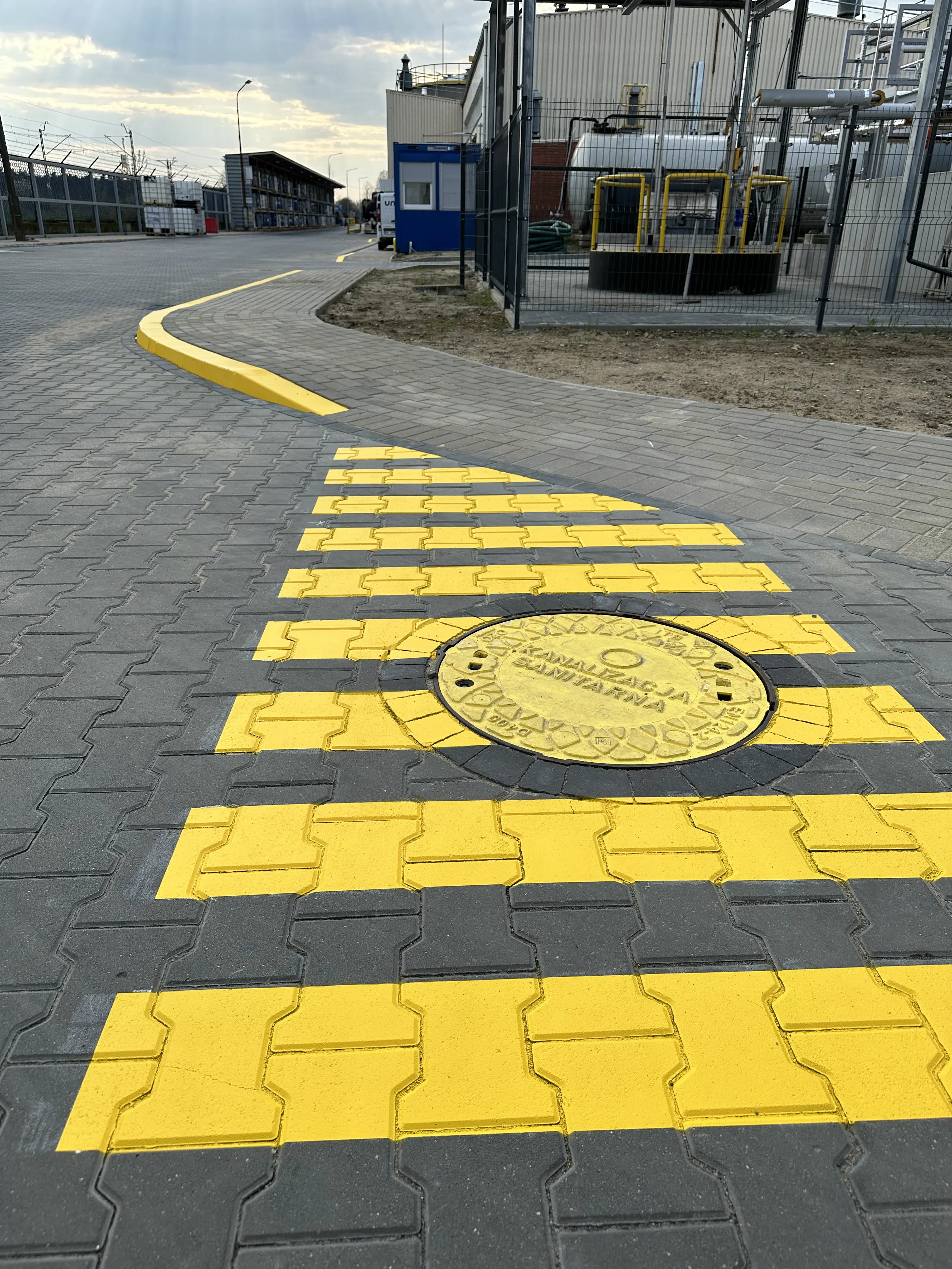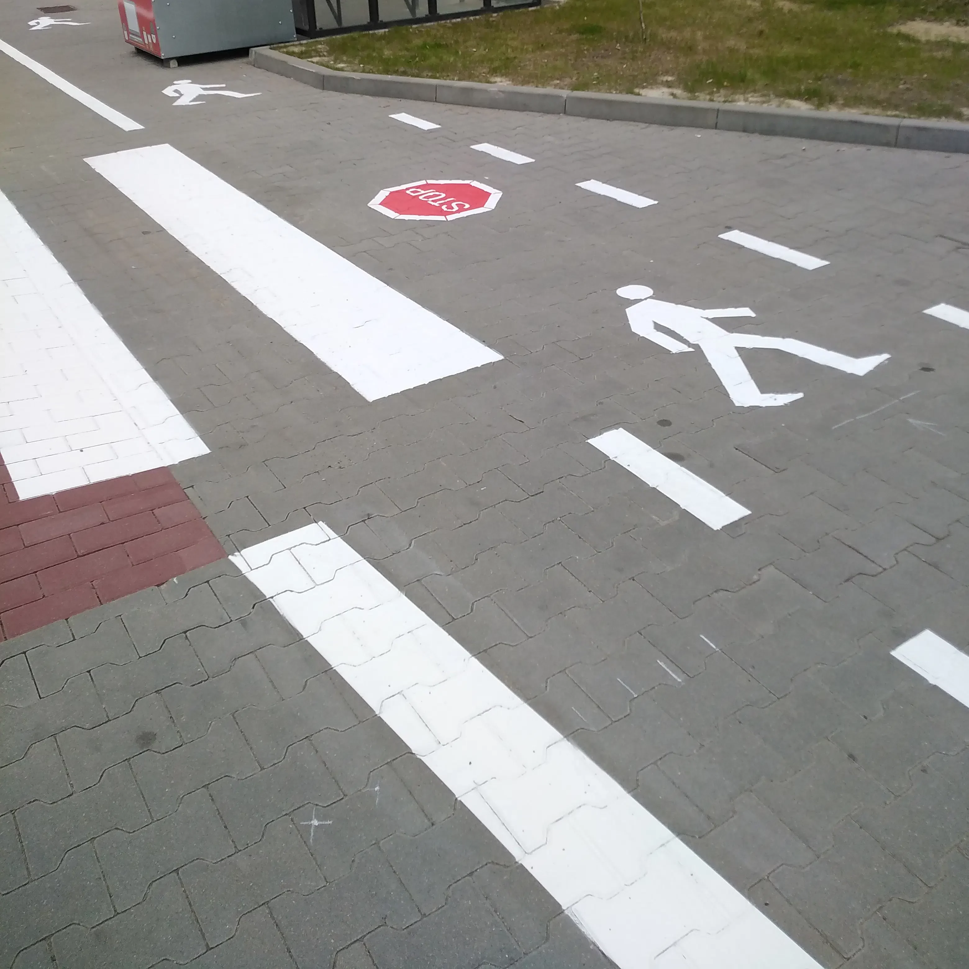 Die dünnschichtige Bodenmarkierung in Außenbereichen ermöglicht eine präzise Kennzeichnung von Fahrspuren, Parkplätzen und Sicherheitszonen, wobei sie gleichzeitig Langlebigkeit und ästhetische Qualität gewährleistet. Durch den Einsatz spezialisierter, wetterbeständiger Farben, die intensivem Verkehr standhalten, bleibt die Markierung langfristig sichtbar. Der Prozess umfasst: Untergrundvorbereitung, Präzises Auftragen der Markierung gemäß den Normen, Anpassung des Designs an die spezifischen Anforderungen des Geländes. Diese Art der Markierung optimiert die Verkehrsorganisation und erhöht die Sicherheit in öffentlichen, industriellen und gewerblichen Bereichen.