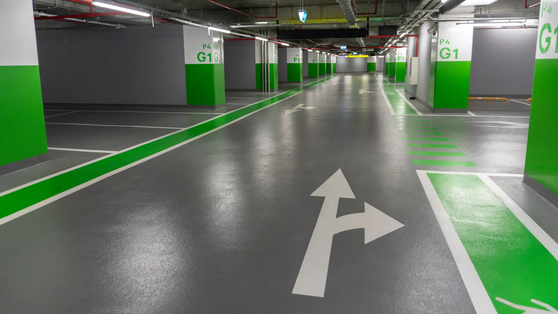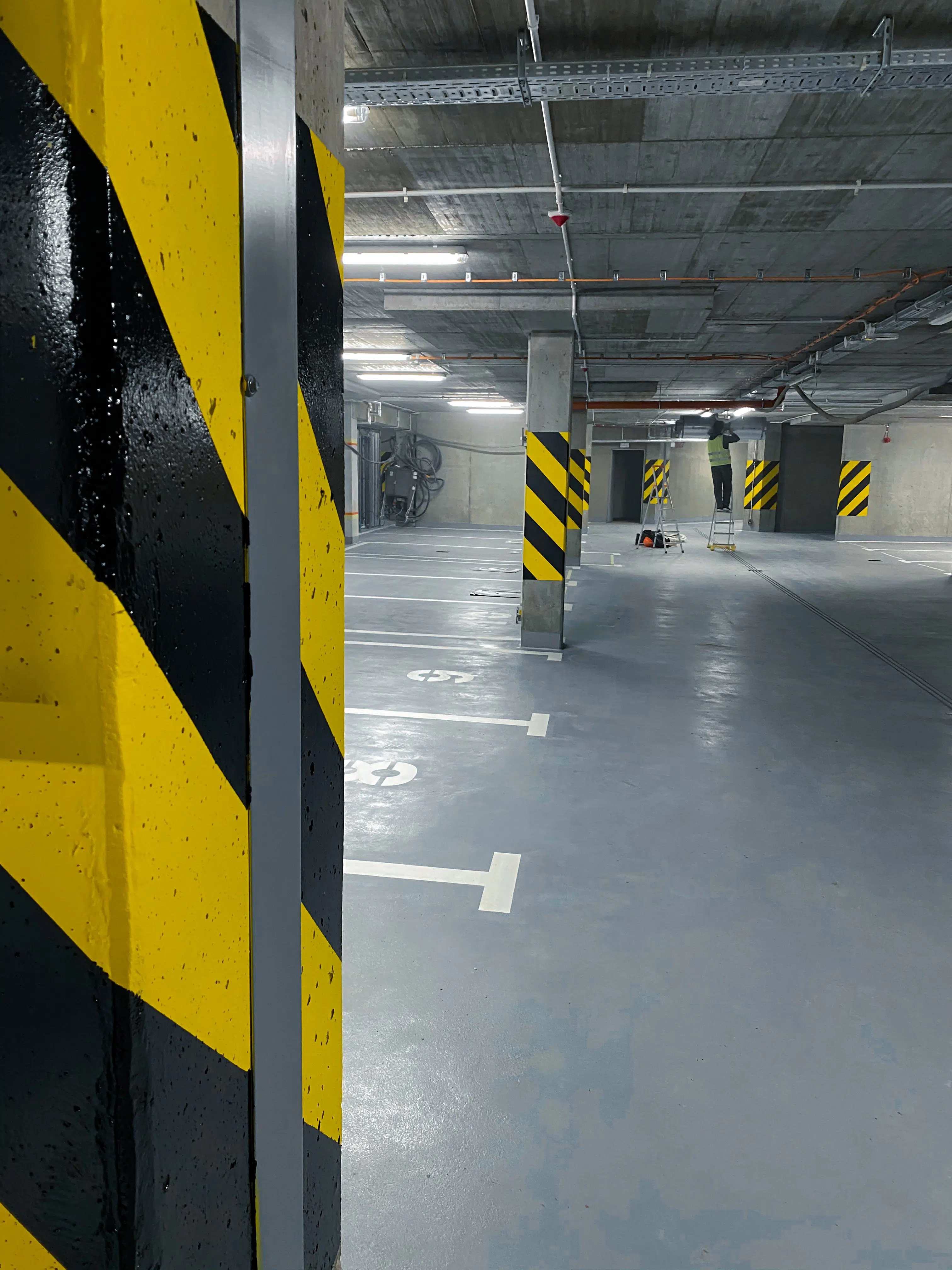 In Tiefgaragen konzentrieren wir uns auf horizontale und vertikale Markierungen, die Sicherheit erhöhen sowie die Lesbarkeit und Funktionalität der Fläche verbessern. Unsere Leistungen umfassen: Dünnschichtige Bodenmarkierung, die sich ideal für Tiefgaragen eignet, Montage von vertikalen Markierungen, einschließlich Säulenanstrich und Installation von Verkehrszeichen, Betonbodenrenovierung, darunter Betonpolieren und Fugensanierung, um eine langlebige und ästhetische Oberfläche in stark frequentierten Parkbereichen zu gewährleisten.