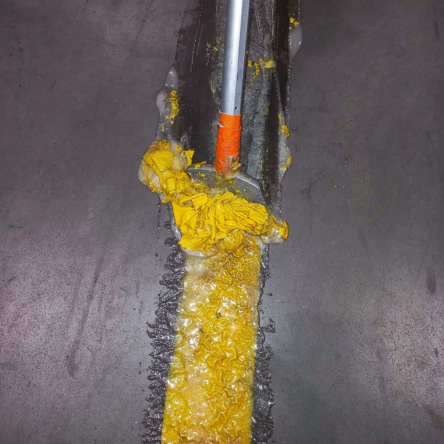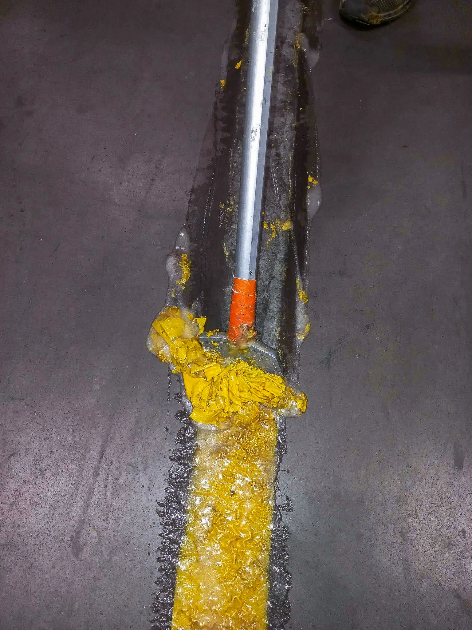 Die Entfernung erfolgt mit einem speziellen Gel, das chemische Verbindungen enthält, die Acryl-, Epoxid-, Polyurethanfarben, Montage- und Industriekleber sowie ein- und zweikomponentige Lacke auflösen. Der Prozess wird manuell durchgeführt, wobei wir Entfernungsgele, Lösungsmittel, Schaber und Spachtel verwenden. Die Entsorgung des entfernten Materials erfolgt gemäß den Umweltschutzbestimmungen und den BDO-Richtlinien und ist vollständig umweltfreundlich. Während des Entfernungsprozesses greifen wir nicht in die Struktur des Untergrunds ein und beschädigen den Beton nicht. Einziger möglicher Effekt der Behandlung sind hellere Spuren auf der Betonoberfläche, die mit der Nutzung der Fläche allmählich verblassen. Die Entfernung von Bodenmarkierungen auf Epoxidböden kann nur bei bestimmten Farbtypen durchgeführt werden. Eine Besichtigung vor Ort sowie ein kurzer Audit sind erforderlich, um die Möglichkeit der Durchführung dieser Dienstleistung zu bewerten.